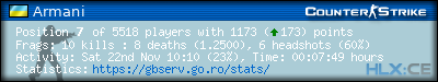 | Rank | Server | Kills | % | Ratio | Deaths | K:D | Headshots | Percentage of Headshots | % | HS:K |
