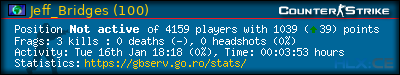 | Rank | Name | Time | Last Use | Kills | Deaths | K:D | Headshots | HS:K | Suicides | Accuracy |