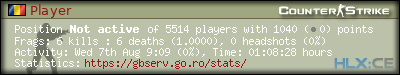 | Rank | Name | Time | Last Use | Kills | Deaths | K:D | Headshots | HS:K | Suicides | Accuracy |