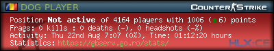 | Rank | Name | Time | Last Use | Kills | Deaths | K:D | Headshots | HS:K | Suicides | Accuracy |