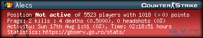 | Rank | Name | Time | Last Use | Kills | Deaths | K:D | Headshots | HS:K | Suicides | Accuracy |