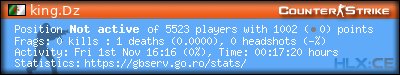 | Rank | Name | Time | Last Use | Kills | Deaths | K:D | Headshots | HS:K | Suicides | Accuracy |