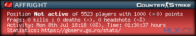 | Rank | Name | Time | Last Use | Kills | Deaths | K:D | Headshots | HS:K | Suicides | Accuracy |