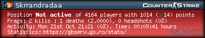 | Rank | Name | Time | Last Use | Kills | Deaths | K:D | Headshots | HS:K | Suicides | Accuracy |