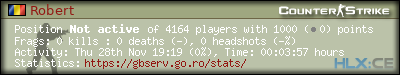 | Rank | Name | Time | Last Use | Kills | Deaths | K:D | Headshots | HS:K | Suicides | Accuracy |