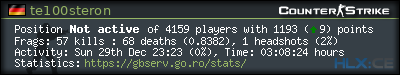| Rank | Name | Time | Last Use | Kills | Deaths | K:D | Headshots | HS:K | Suicides | Accuracy |