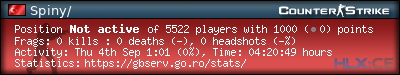 | Rank | Name | Time | Last Use | Kills | Deaths | K:D | Headshots | HS:K | Suicides | Accuracy |