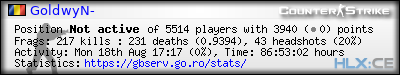 | 7 | HLstatsX:http://gbserv.go.ro | 0d 00:00:53h | 2024-02-07 18:26:47 | 0 | 0 | 0.00 | 0 | - | 0 | 0.0% |