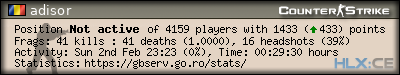 | Weapon Accuracy: | 28.4% (0%*) | |