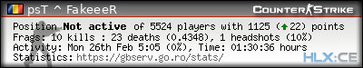| Rank | Name | Time | Last Use | Kills | Deaths | K:D | Headshots | HS:K | Suicides | Accuracy |