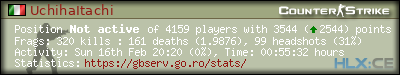 | Rank | Name | Time | Last Use | Kills | Deaths | K:D | Headshots | HS:K | Suicides | Accuracy |