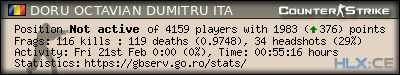 | Rank | Name | Time | Last Use | Kills | Deaths | K:D | Headshots | HS:K | Suicides | Accuracy |