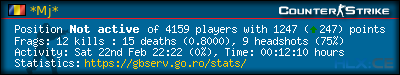 | 1 | *Mj* | 0d 00:12:10h | 2025-02-22 22:13:04 | 12 | 15 | 0.80 | 9 | 0.75 | 0 | 15.0% |