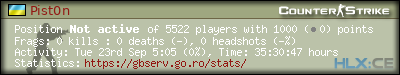 | Rank | Name | Time | Last Use | Kills | Deaths | K:D | Headshots | HS:K | Suicides | Accuracy |