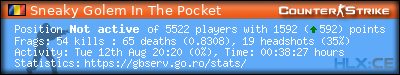 | 1 | Sneaky Golem In The Pocket | 0d 00:38:27h | 2025-08-12 20:48:22 | 54 | 65 | 0.83 | 19 | 0.35 | 0 | 18.0% |