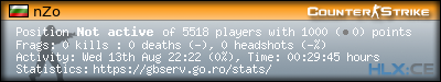 | Rank | Name | Time | Last Use | Kills | Deaths | K:D | Headshots | HS:K | Suicides | Accuracy |