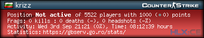 | 1 | krizz | 0d 00:43:57h | 2025-09-03 21:21:24 | 0 | 0 | 0.00 | 0 | - | 0 | 0.0% |