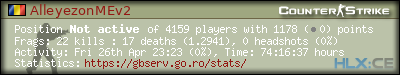 | Rank | Name | Time | Last Use | Kills | Deaths | K:D | Headshots | HS:K | Suicides | Accuracy |
