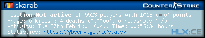 | 1 | skarab | 0d 00:36:59h | 2024-02-27 01:59:30 | 0 | 4 | 0.00 | 0 | - | 0 | 2.9% |
