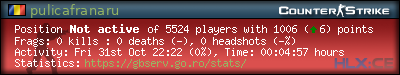 | Rank | Name | Time | Last Use | Kills | Deaths | K:D | Headshots | HS:K | Suicides | Accuracy |