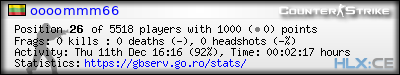 | Rank | Name | Time | Last Use | Kills | Deaths | K:D | Headshots | HS:K | Suicides | Accuracy |