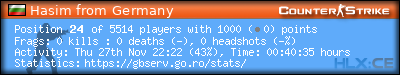 | Rank | Name | Time | Last Use | Kills | Deaths | K:D | Headshots | HS:K | Suicides | Accuracy |