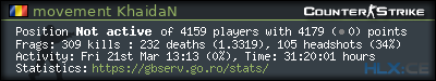 | Rank | Name | Time | Last Use | Kills | Deaths | K:D | Headshots | HS:K | Suicides | Accuracy |