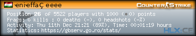 | Rank | Name | Time | Last Use | Kills | Deaths | K:D | Headshots | HS:K | Suicides | Accuracy |