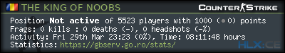 | Rank | Name | Time | Last Use | Kills | Deaths | K:D | Headshots | HS:K | Suicides | Accuracy |