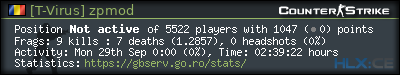 | Rank | Name | Time | Last Use | Kills | Deaths | K:D | Headshots | HS:K | Suicides | Accuracy |