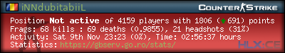 | Rank | Name | Time | Last Use | Kills | Deaths | K:D | Headshots | HS:K | Suicides | Accuracy |